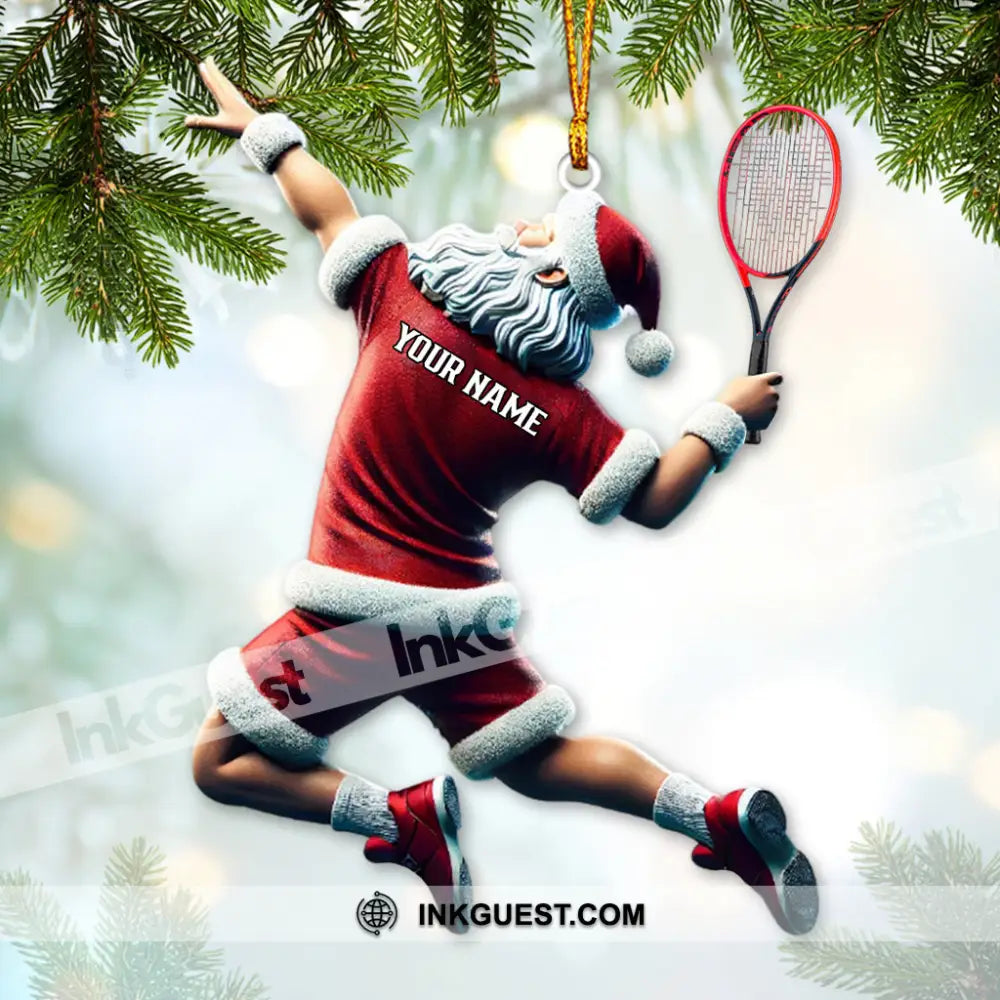 Custom Name Tennis Ornament, Tennis Santa Christmas Gift