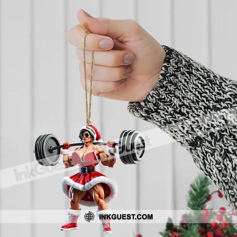 Custom Name Woman Gym Work Out Santa Ornament, Christmas Gift Decor