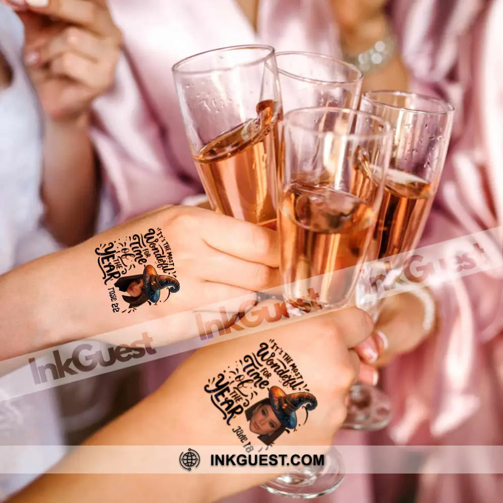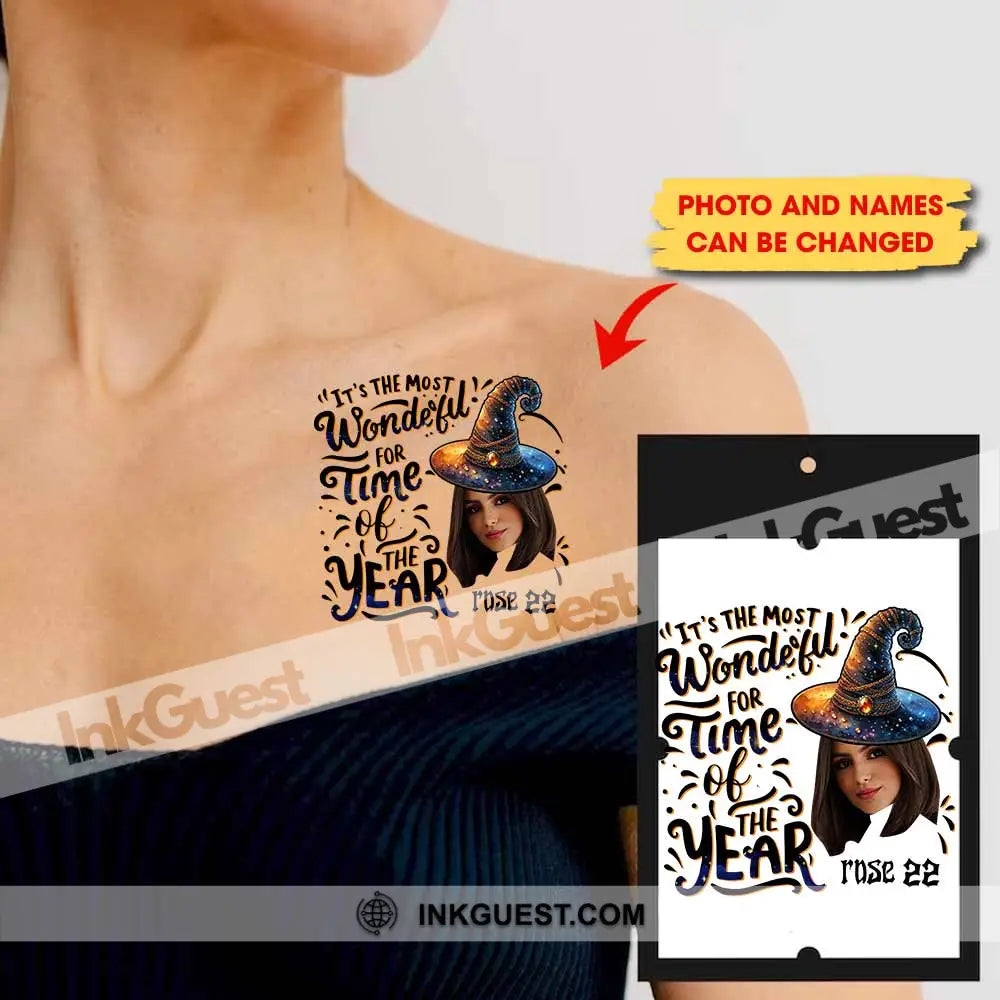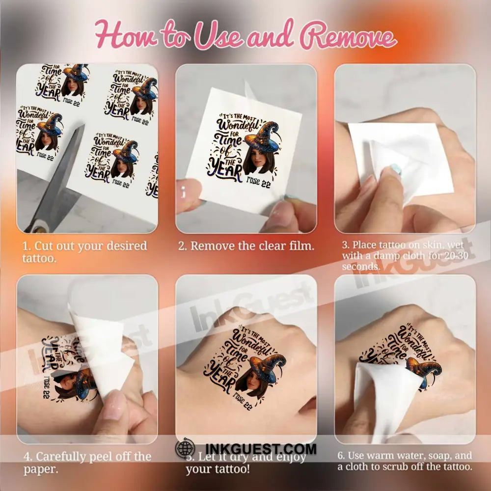 It's The Most Wonderful Time, Custom Face Photo And Texts Temporary Tattoo, Personalized Tattoo, Fake Tattoo