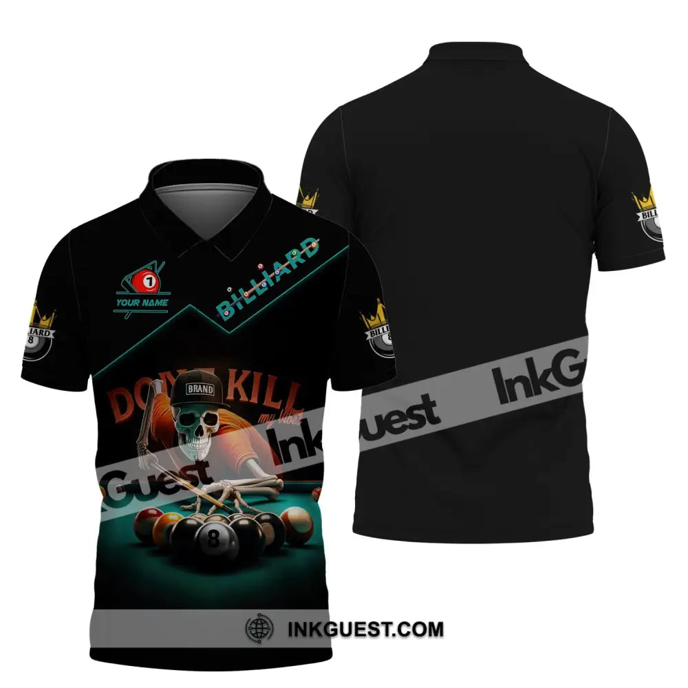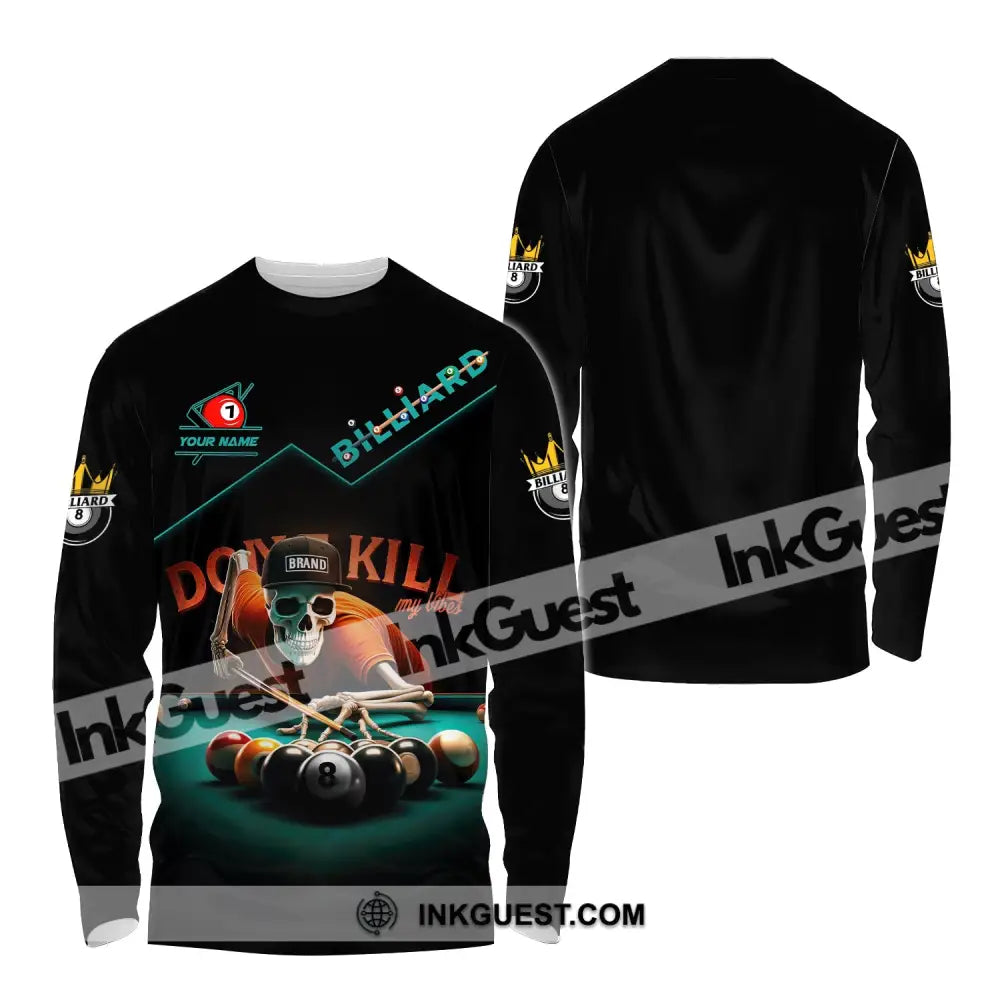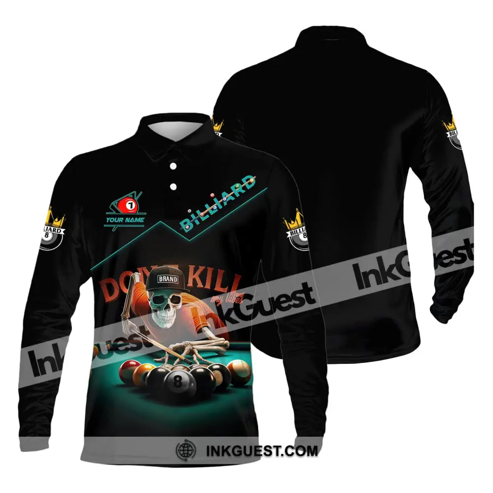 Man Shirt, Custom Name Billiards Shirt, Billiards Polo Long Sleeve, Billiards Skull, Billiards T-Shirt