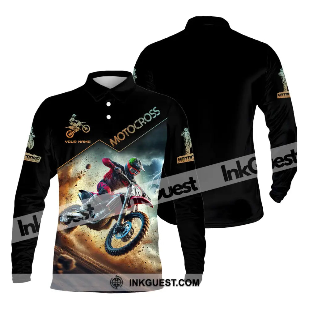 Man Shirt, Custom Name Moto Cross Shirt, Moto Cross Gift, Moto Cross Polo Shirt Long Sleeve Hoodie