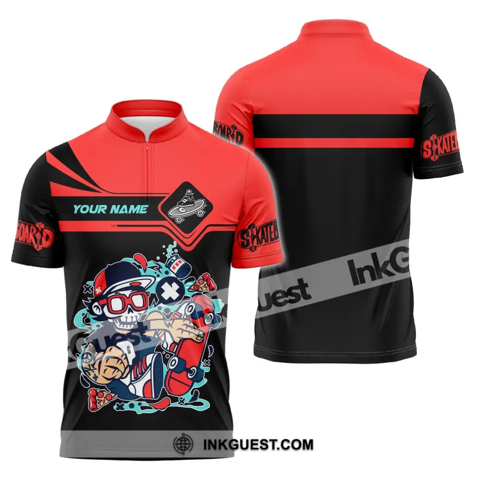 Man Shirt, Custom Name Shirt for Skateboard Lover, Skateboard Polo Long Sleeve, Skateboard Player Gift