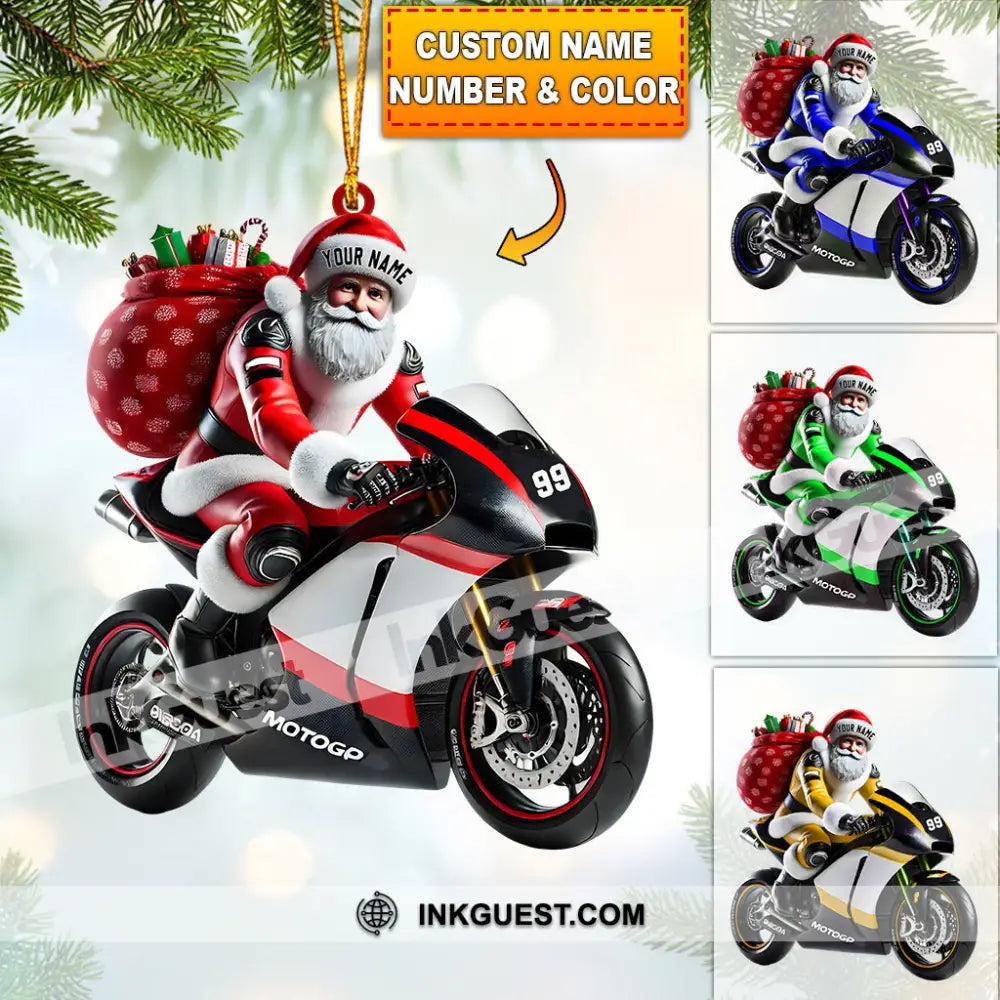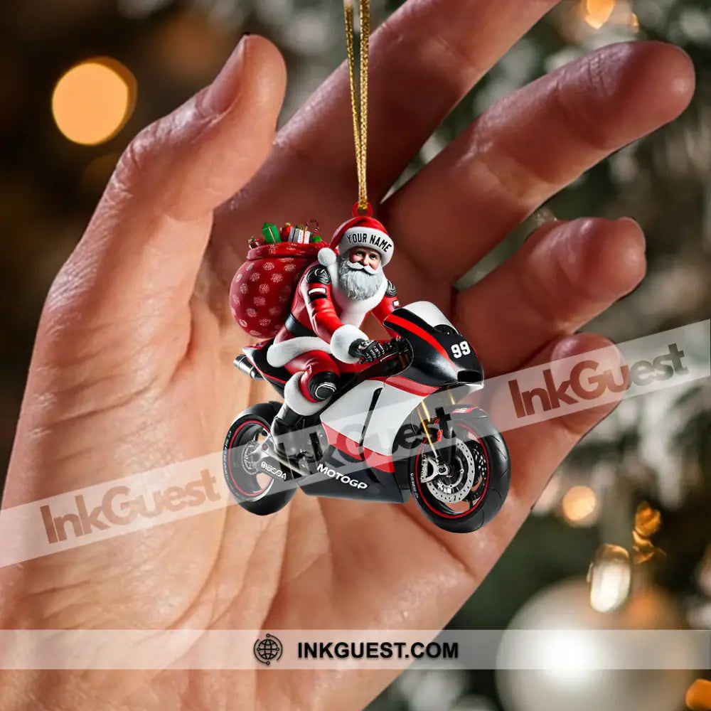 Santa Riding Motorcycle Home Decor Christmas Ornament, Personalized Ornament