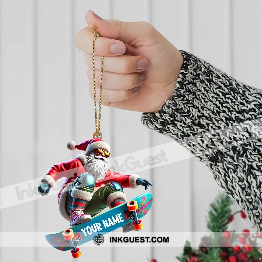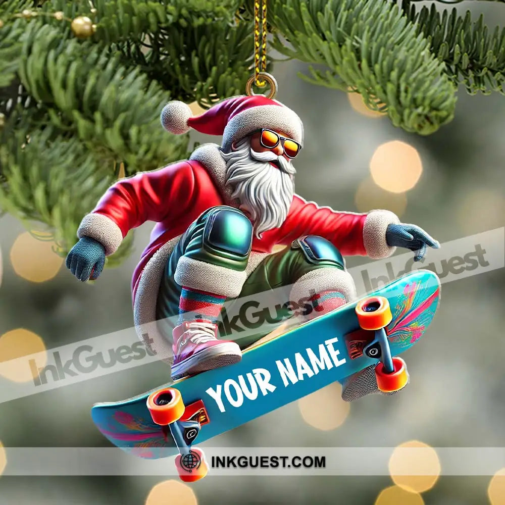 Skateboarding Santa Christmas Ornament, Personalized Ornament