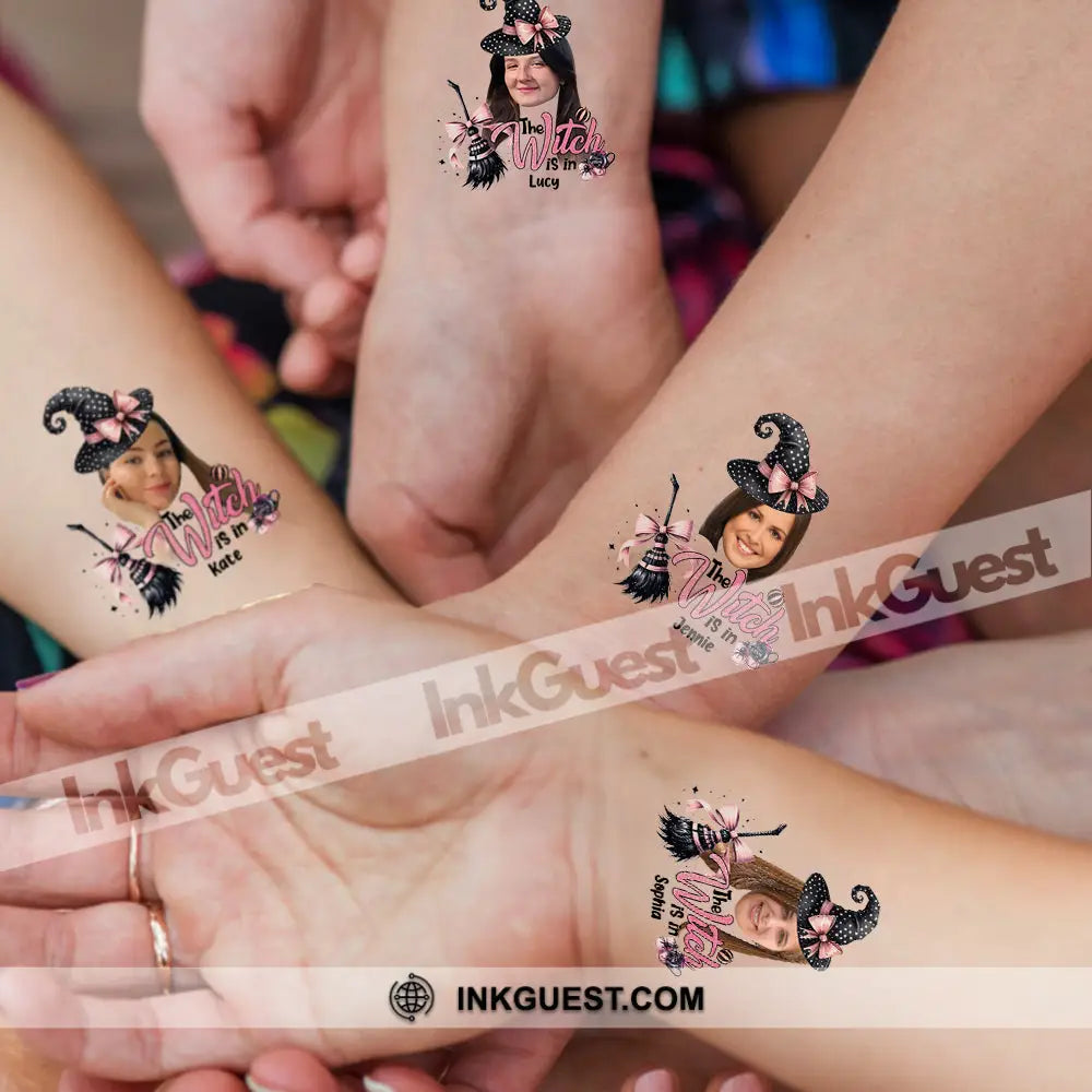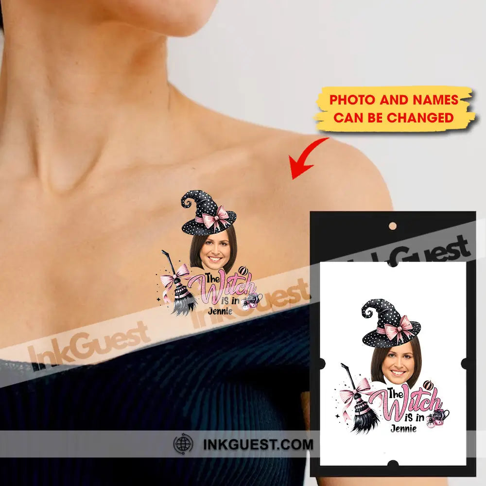 The Witch Is In, Custom Face Photo And Texts Temporary Tattoo, Personalized Tattoo, Fake Tattoo