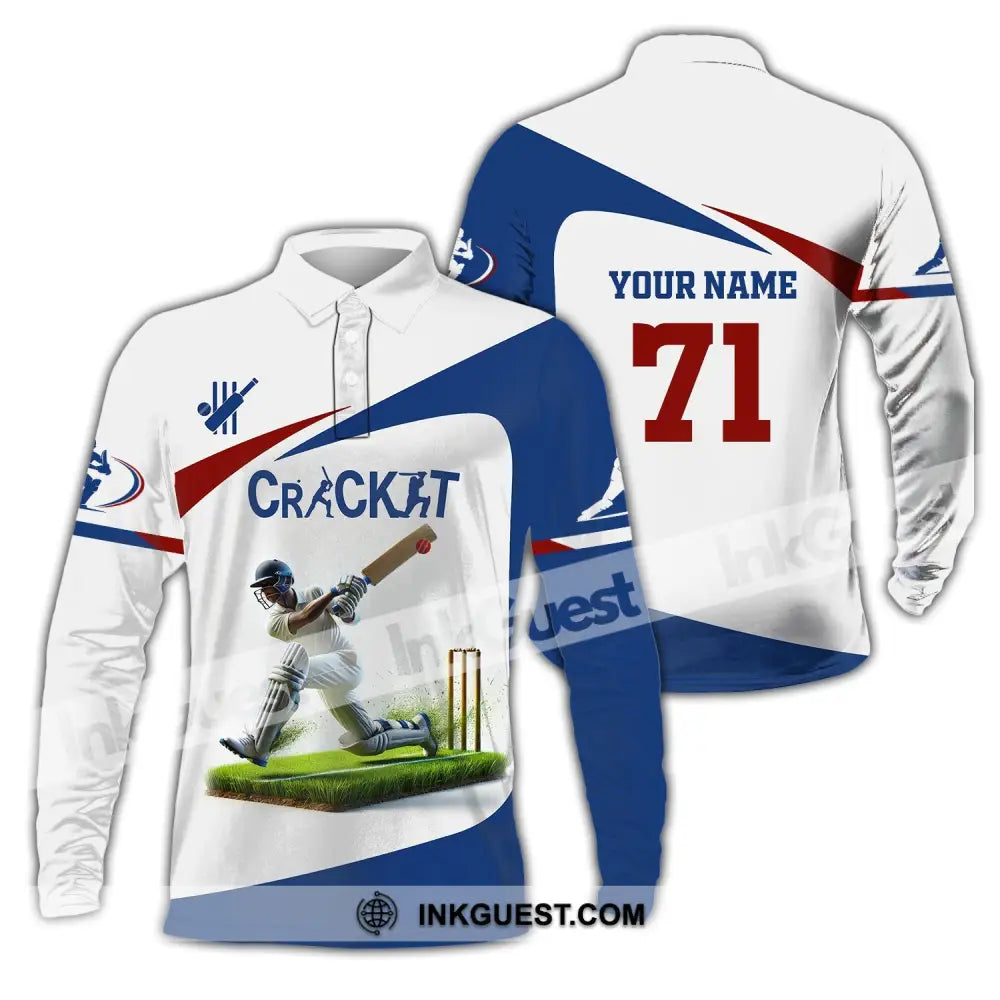 Unisex Shirt, Custom Name and Number Cricket Ball Shirt, Cricket Ball Polo Long Sleeve T-Shirt