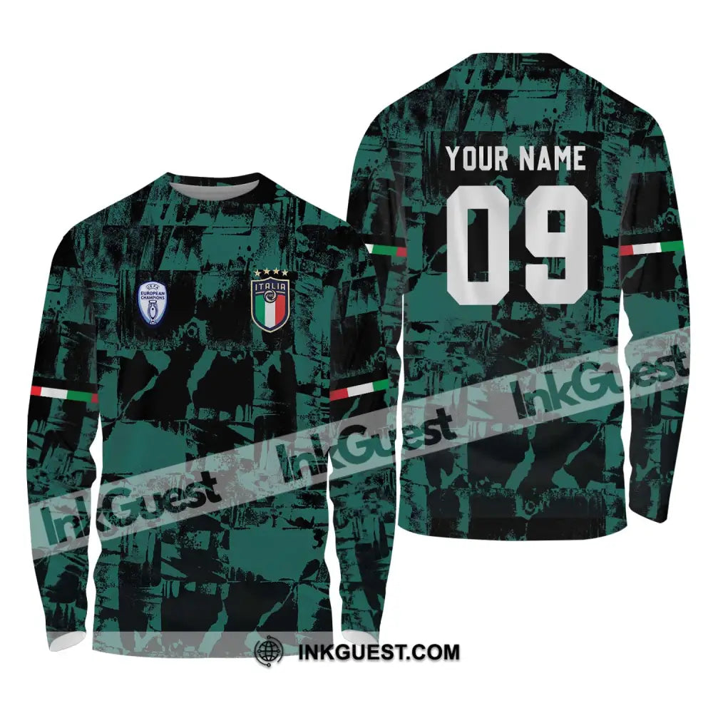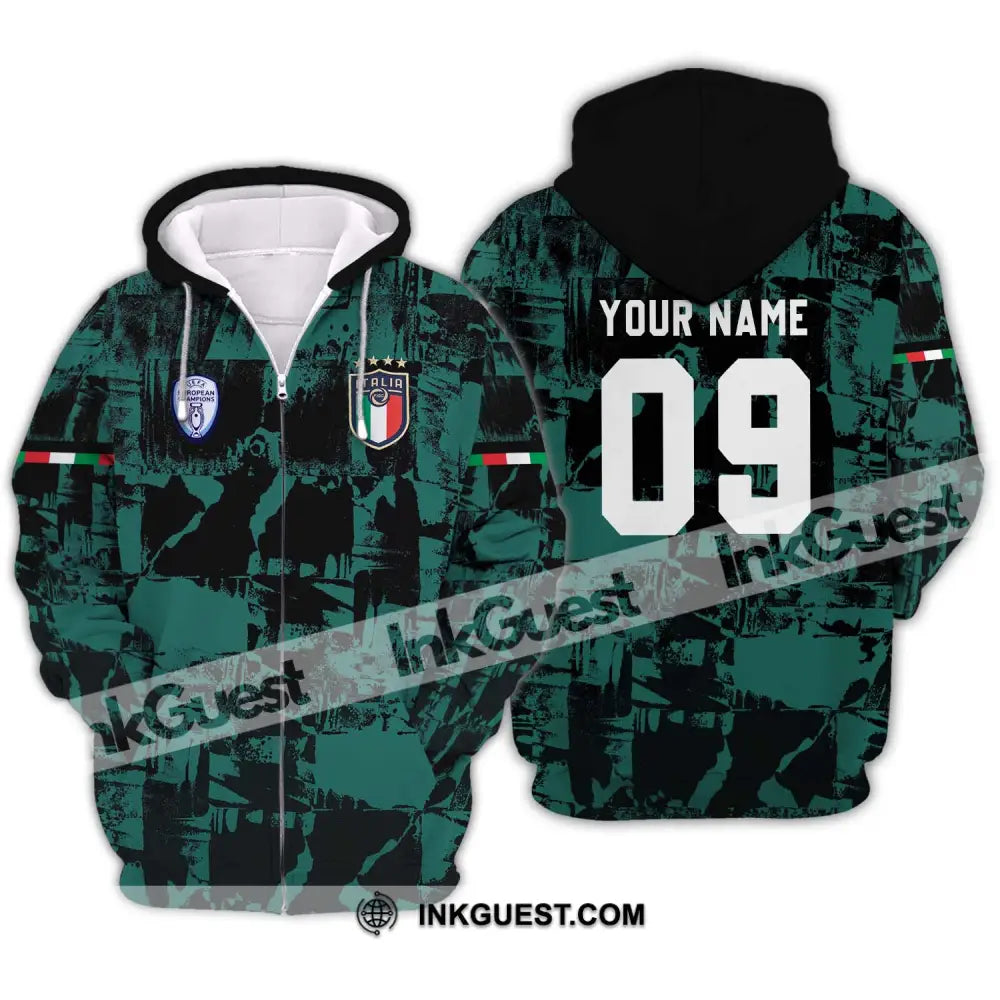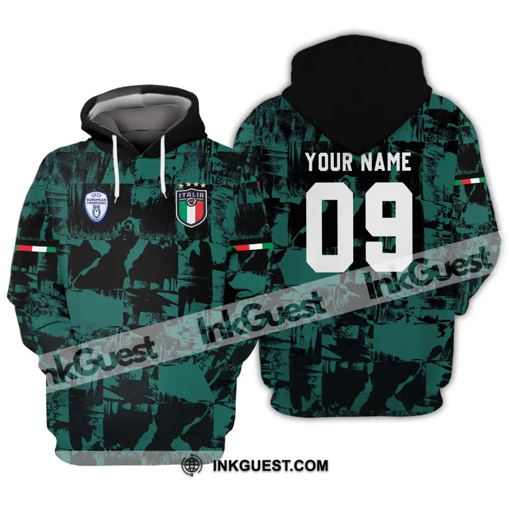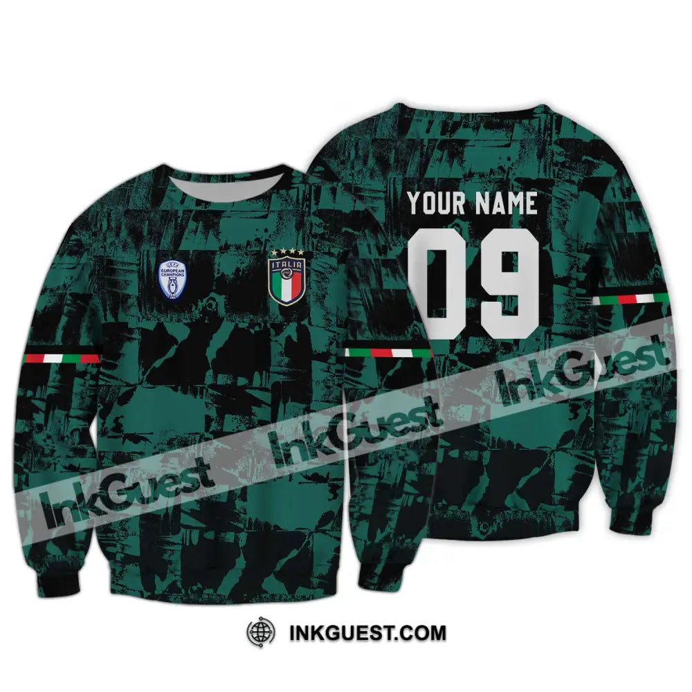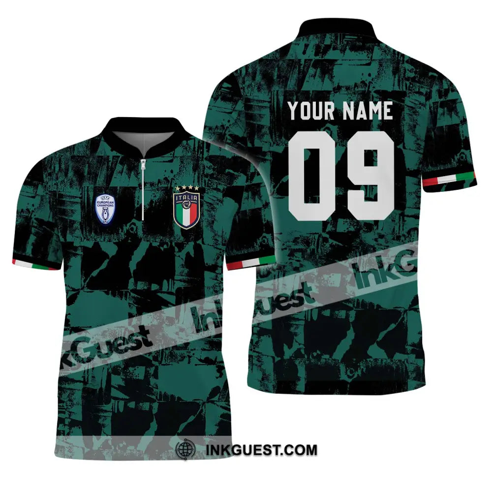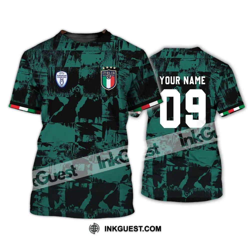 Unisex Shirt - Custom Name And Number Shirt, Euro 2024 Italy National Team Black And Green