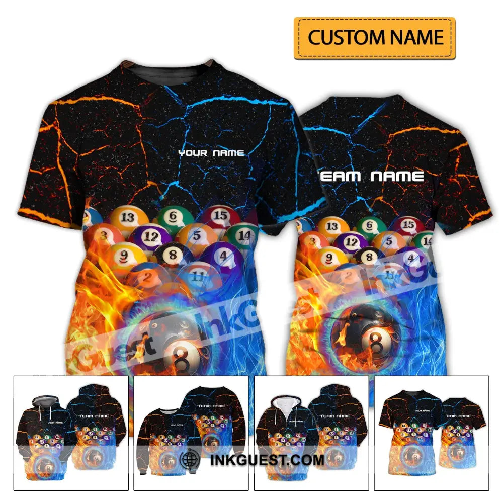 Unisex Shirt - Custom Name And Team Name Shirt -Billiard Balls Fire And Water