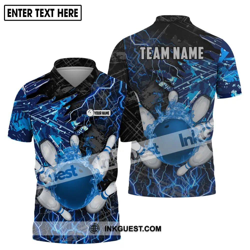 Unisex Shirt - Custom Name And Team Name Shirt, Blue Lightning Bowling Shirt