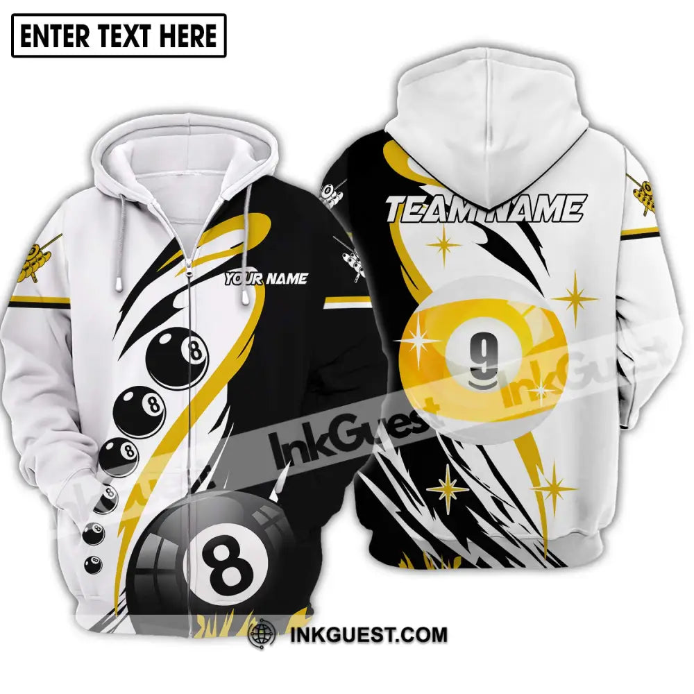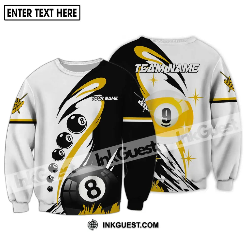 Unisex Shirt - Custom Name And Team Name Shirt, Yellow Black And White Billiard Shirt