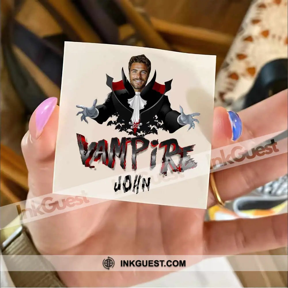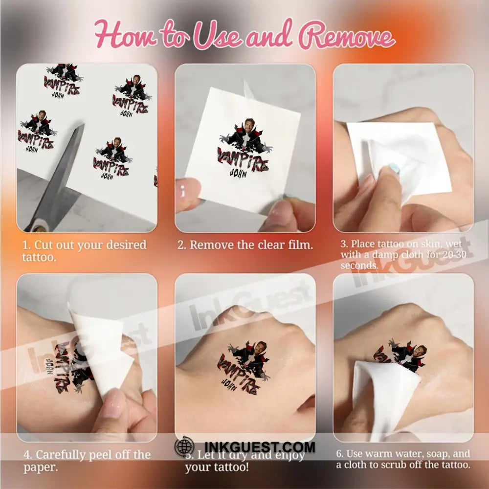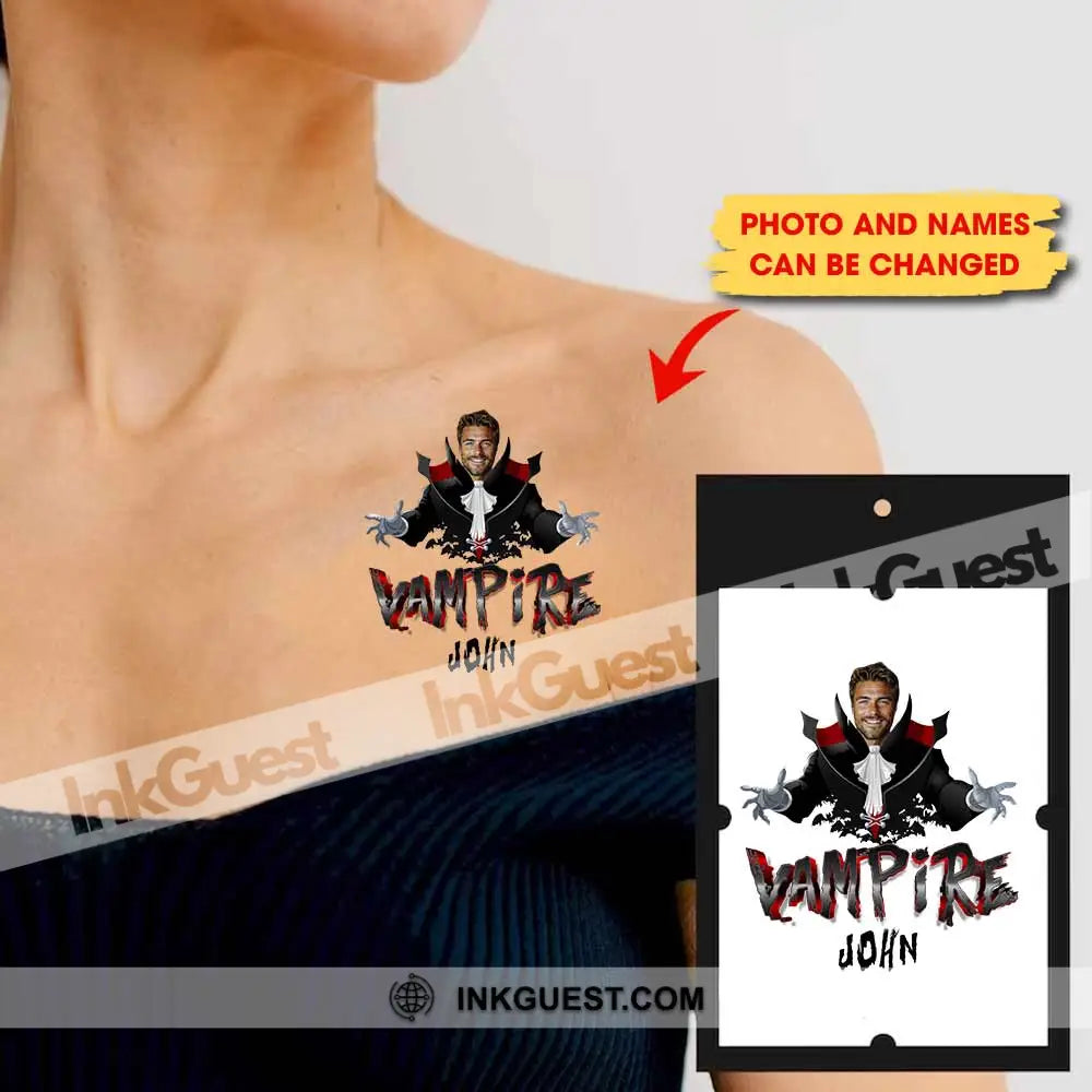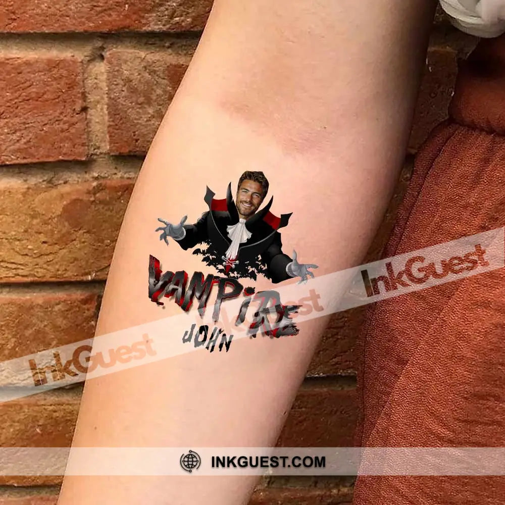 Vampire, Custom Face Photo And Texts Temporary Tattoo, Personalized Tattoo, Fake Tattoo
