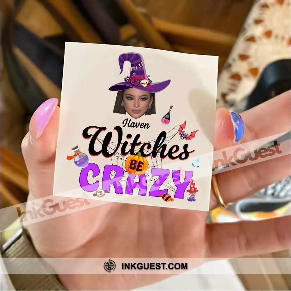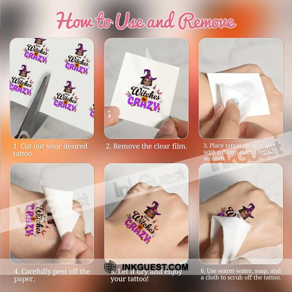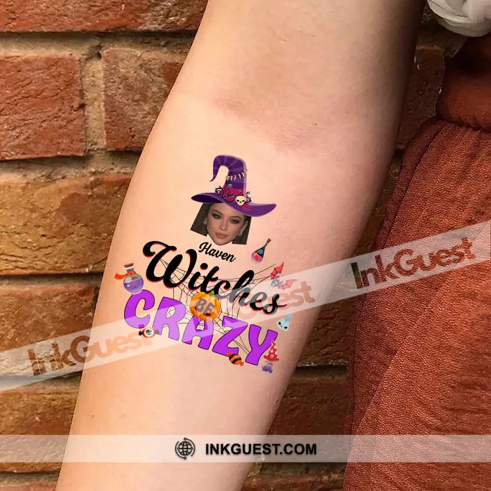 Witches Be Crazy, Custom Face Photo And Texts Temporary Tattoo, Personalized Tattoo, Fake Tattoo