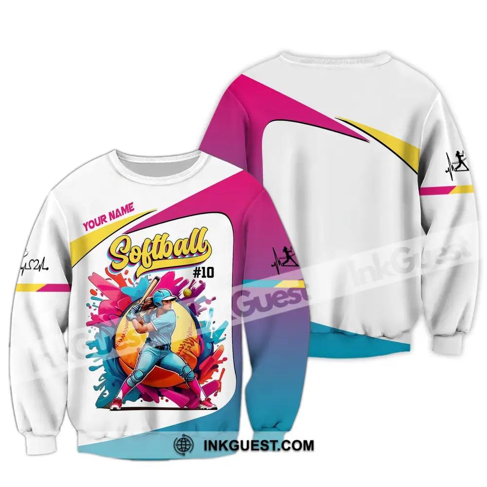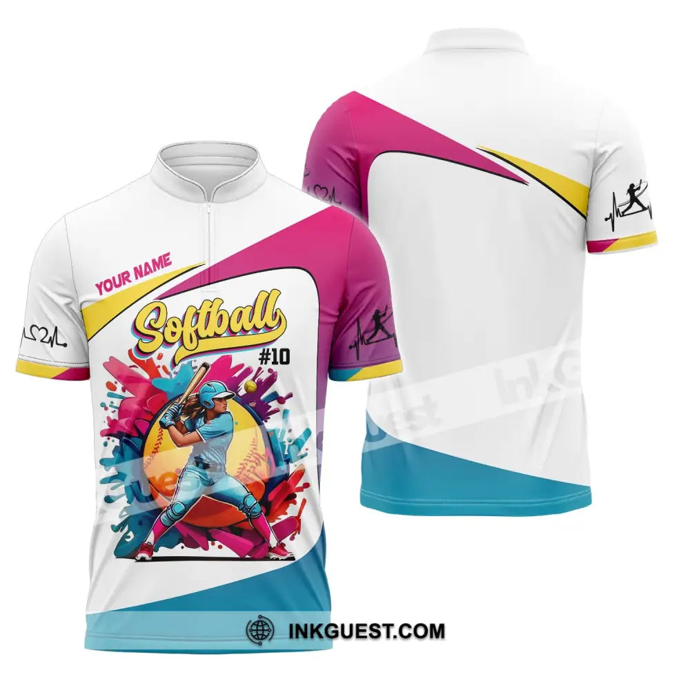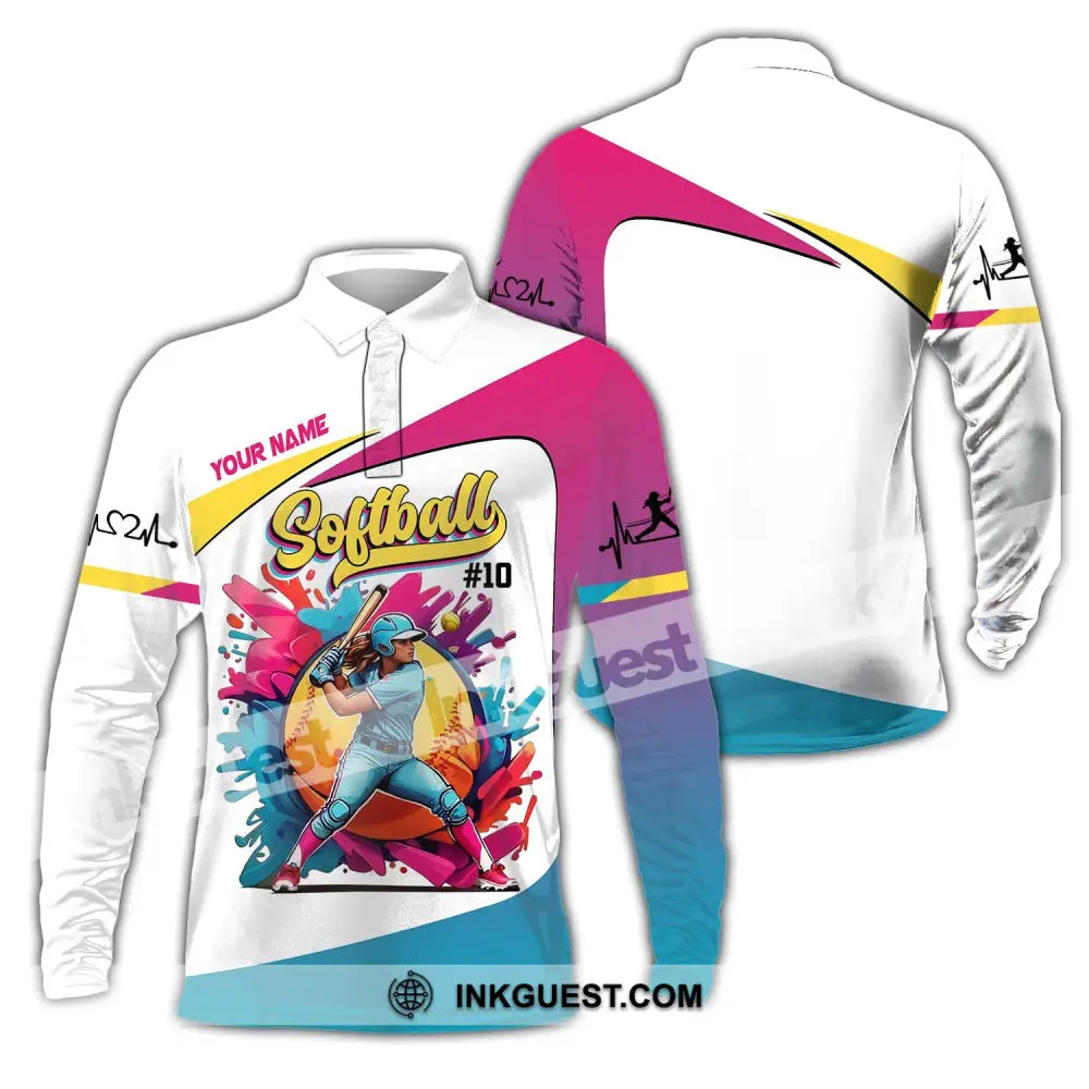 Woman Shirt, Custom Name Softball Shirt, Softball Polo Long Sleeve, Softball Lover Gift